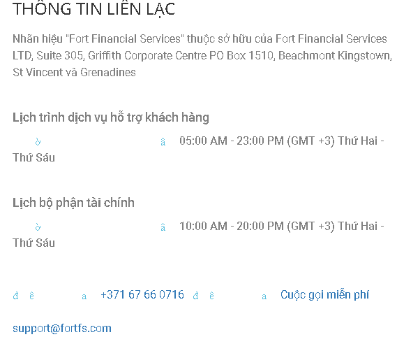 Sàn FortFS được thành lập tại St. Vincent & the Grenadines với tư cách là Công ty Kinh doanh Quốc tế với số đăng ký 25307 BC 2019. Các đối tượng của Công ty là tất cả các vấn đề không bị cấm bởi Đạo luật Công ty Kinh doanh Quốc tế (Sửa đổi và Hợp nhất), Chương 149 của Luật sửa đổi của Saint Vincent và Grenadines, 2009.