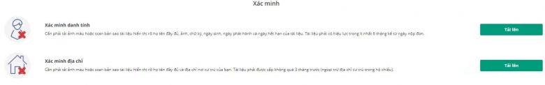 Tại đây bạn cần đăng tải hình ảnh bao gồm: giấy tờ xác minh nhân thân (Chứng minh nhân dân hoặc Passport), giấy tờ xác minh địa chỉ (hóa đơn điện nước, ngân hàng,hóa đơn giao hàng…) trên các giấy tờ này phải có địa chỉ nhà bạn và tên của bạn.
