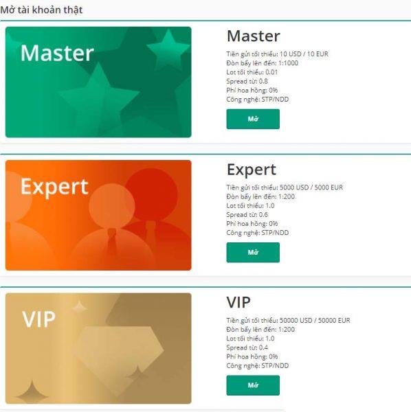 Ở đây có 3 loại tài khoản chính với các đặc điểm khác nhau.