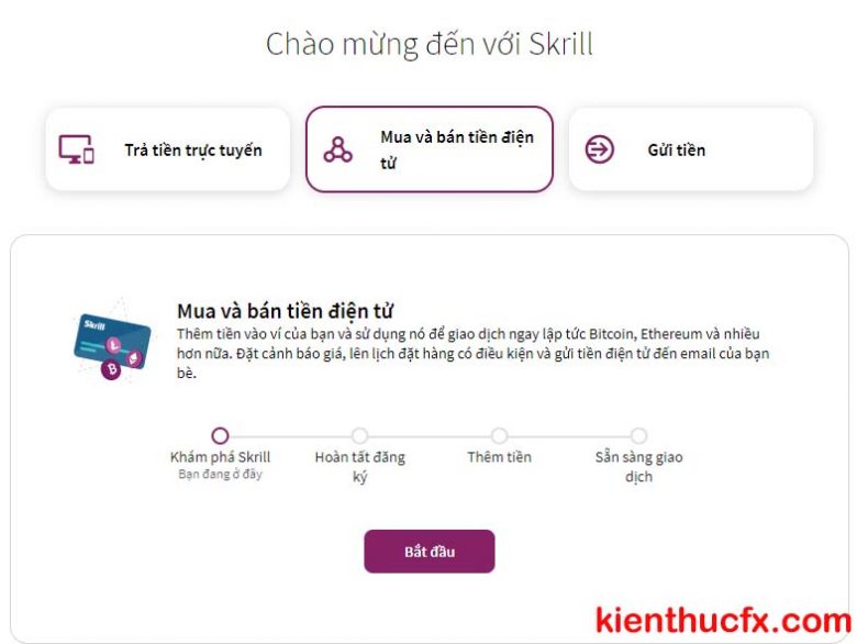 - Cho phép chuyển tiền vào ví điện tử Skrill nhanh chóng bằng thẻ tín dụng hoặc thẻ ghi nợ quốc tế.